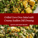 This Grilled Corn Orzo Salad with Scallion Dill Dressing is a vibrant and refreshing dish perfect for warm-weather meals. Featuring smoky grilled corn, tender orzo pasta, and a herbaceous creamy scallion dill dressing, this salad combines fresh greens, marinated artichokes, and edamame for a deliciously balanced plate. It’s ideal as a light lunch or a colorful side for any gathering.