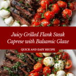 This Grilled Flank Steak Caprese with Balsamic Dressing is a vibrant and flavorful dish combining tender, marinated flank steak grilled to perfection with a fresh Caprese salad of cherry tomatoes, mozzarella balls, and basil. Finished with a drizzle of balsamic glaze, it’s an elegant yet simple meal perfect for summer grilling or any special occasion.