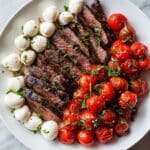 This Grilled Flank Steak Caprese with Balsamic Dressing is a vibrant and flavorful dish combining tender, marinated flank steak grilled to perfection with a fresh Caprese salad of cherry tomatoes, mozzarella balls, and basil. Finished with a drizzle of balsamic glaze, it’s an elegant yet simple meal perfect for summer grilling or any special occasion.