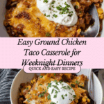 This Ground Chicken Taco Casserole is a quick and flavorful weeknight meal that combines the best of Mexican-inspired ingredients in a simple bake. With tender seasoned chicken, beans, corn, and melty cheese layered with crispy tortilla strips, it’s comfort food made easy and satisfying.