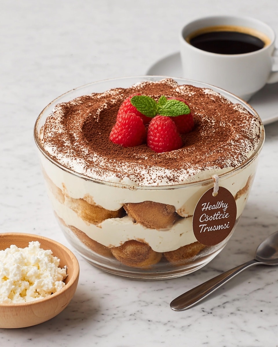 Keywords: Healthy tiramisu, cottage cheese dessert, low sugar tiramisu, protein dessert, Italian classic, guilt-free dessert, creamy tiramisu, no bake dessert
