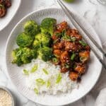 This Healthy Teriyaki Chicken Rice Bowl recipe features tender chicken breast pieces cooked in a homemade teriyaki sauce made from tamari, ginger, garlic, and honey. Served over steamed broccoli and fluffy rice, and garnished with green onions and sesame seeds, this dish is a satisfying, flavorful, and balanced meal perfect for a nutritious weeknight dinner.