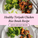These Healthy Teriyaki Chicken Rice Bowls are a perfect balance of sweet and savory flavors with tender chicken, steamed broccoli, and a glossy homemade teriyaki sauce. Quick to prepare and packed with wholesome ingredients, they make a satisfying meal for any day of the week.