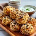 These High-Protein Bagel Bites are a quick and easy snack made with gluten-free flour, protein powder, and Greek yogurt, filled with creamy cream cheese and seasoned with Everything But The Bagel seasoning. Perfect for a nutritious, high-protein bite that’s air-fried to golden perfection in just minutes.