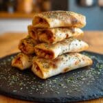 Store pizza rolls in an airtight container in the refrigerator for up to 4 days. Wrap each roll individually in foil or parchment paper to prevent sticking. For longer storage, freeze the rolls tightly wrapped in plastic wrap and placed in freezer bags for up to 3 months. Reheat in the oven at 350°F for 10-15 minutes (if refrigerated) or 20-25 minutes (if frozen) for a crispy result. Microwaving for 1-2 minutes is quicker but may soften the exterior.