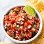 Keywords: pico de gallo, fresh salsa, Mexican salsa, no-cook salsa, homemade salsa, tomato salsa, fresh pico