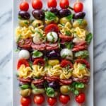 Italian Antipasto Skewers are a vibrant and delicious appetizer perfect for any gathering. Combining marinated tortellini, fresh mozzarella, and savory salami, these skewers are easy to prepare and sure to impress your guests.