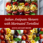 Keywords: Italian antipasto skewers, marinated tortellini, mozzarella skewers, appetizer recipe, Italian party food