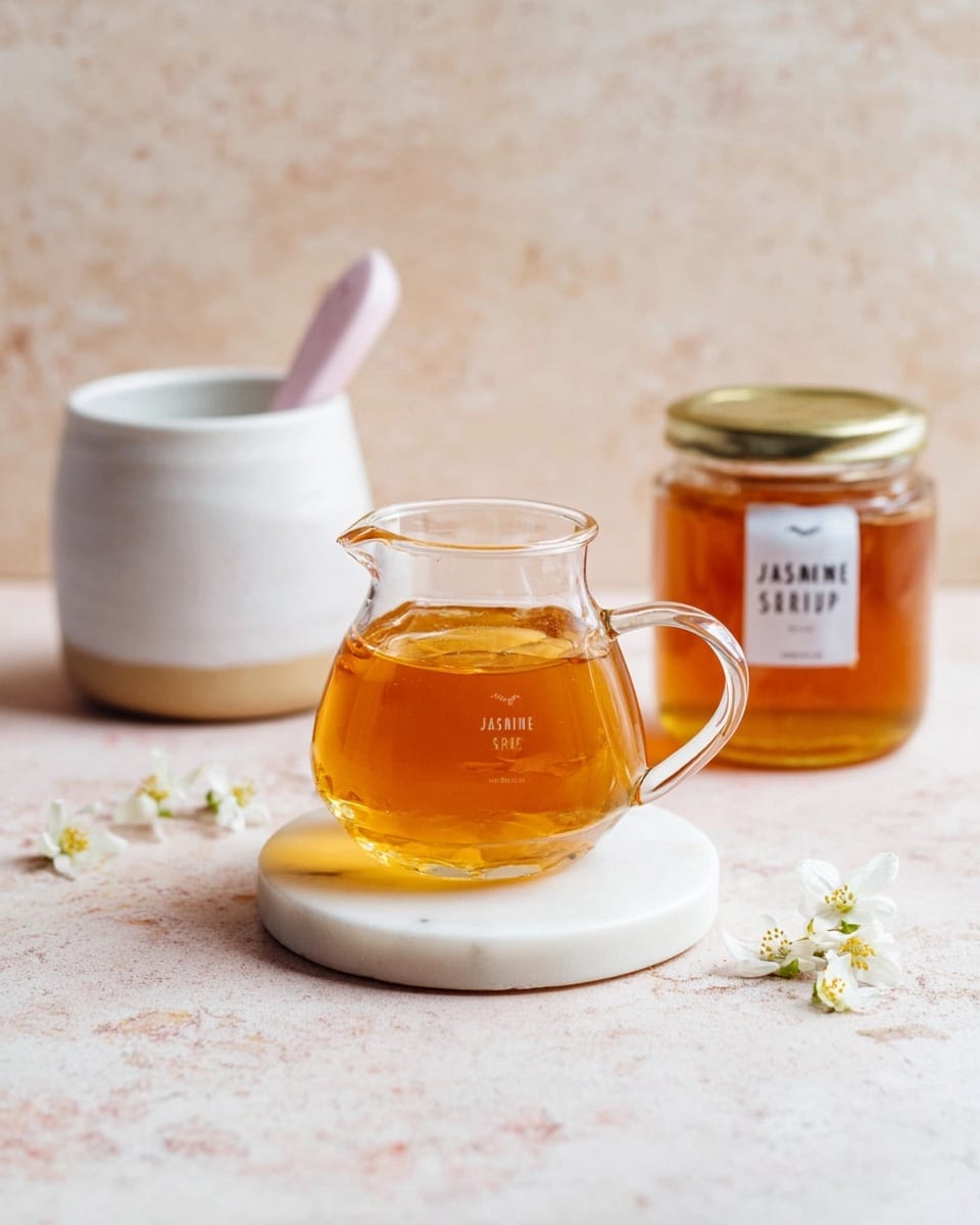 Keywords: jasmine syrup, jasmine tea syrup, floral syrup, sweet syrup, drink syrup, dessert syrup, homemade syrup