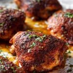 This Jamaican Jerk Chicken recipe features bone-in, skin-on chicken marinated in a vibrant blend of scallions, garlic, jalapenos, Scotch bonnet peppers, ginger, lime juice, and aromatic spices. After a long marinating period to infuse bold flavors, the chicken is either oven-baked until crispy or grilled to charred perfection, delivering an authentic taste of Jamaica that’s perfect for a flavorful dinner accompanied by rice and fresh lime wedges.