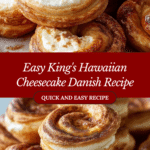 A delightful and easy-to-make King’s Hawaiian Cheesecake Danish featuring soft Hawaiian rolls layered with a creamy sweetened cream cheese filling, baked to golden perfection and topped with a powdered sugar glaze and optional fruit or jam. Perfect for breakfast, brunch, or a sweet snack.