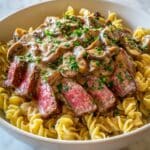 This Leftover Prime Rib Stroganoff is a quick and flavorful way to transform your extra roast into a creamy, comforting meal. Ready in just 20 minutes, it’s perfect for busy nights and serves up five hearty portions.