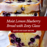 This Lemon Blueberry Bread is a delightful treat combining zesty lemon flavor with bursts of juicy blueberries. Soft, moist, and topped with a tangy lemon glaze, it’s perfect for breakfast, snack time, or dessert.