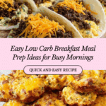 A collection of easy and delicious low carb breakfast meal prep ideas perfect for busy mornings. Featuring keto-friendly egg bites, blueberry bread, and savory breakfast burritos, these recipes are designed to be prepped ahead of time, quickly reheated, and enjoyed on the go while keeping carbs low and flavors high.