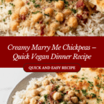 Marry Me Chickpeas are a delicious and hearty dinner featuring tender chickpeas, chewy sun-dried tomatoes, and a creamy coconut milk sauce. This comforting dish can easily be made vegan, making it perfect for a quick and satisfying meal any night of the week.