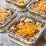 These Meal Prep Breakfast Bowls combine savory ground breakfast sausage, fluffy eggs blended with creamy cottage cheese, and crispy hash browns topped with your choice of feta or cheddar cheese. Perfectly baked in individual containers, they make for an easy, protein-packed breakfast you can enjoy throughout the week.
