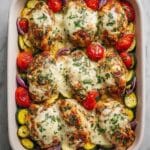 Keywords: Mediterranean chicken bake, zucchini bake, baked chicken and vegetables, healthy chicken dinner, cheesy chicken bake