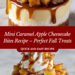 Mini Caramel Apple Cheesecake Bites combine the classic flavors of caramel apples with rich, creamy cheesecake in delightful bite-sized portions. These treats offer a perfect balance of tart apples, warm cinnamon, gooey caramel, and a buttery graham cracker crust. Ideal for fall gatherings, special occasions, or a cozy dessert, these mini cheesecakes are easy to make and irresistibly delicious.