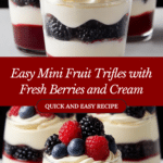 Mini Fruit Trifles with Fresh Berries and Cream are a delightful layered dessert that’s both elegant and easy to make. Combining sponge fingers, creamy custard, fresh berries, and a glossy jelly topping, these individual trifles are perfect for impressing guests or enjoying a refreshing treat at home.