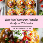 Mini sheet pan tostadas are a quick and fun way to enjoy a classic Mexican favorite with less mess. These bite-sized tostadas are crispy, cheesy, and topped with flavorful chicken and fresh garnishes, perfect for sharing or a casual meal.