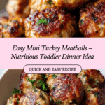 These Mini Turkey Meatballs are a nutritious and easy dinner option perfect for toddlers. Made with lean ground turkey, vegetables, and flavorful herbs, these bite-sized meatballs are baked to perfection, offering a healthy and delicious meal that both kids and adults will enjoy.