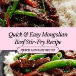 Keywords: Mongolian beef, stir-fry, quick dinner, beef recipe, Asian cuisine, sweet and savory beef, flank steak stir-fry