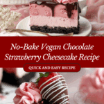 This no-bake chocolate strawberry cheesecake is a delightful, creamy dessert perfect for any occasion. Made with a crunchy Oreo base, a smooth vegan cream cheese filling, and topped with chocolate-dipped strawberries, it’s both indulgent and refreshing.