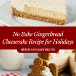 This No Bake Gingerbread Cheesecake is a festive and creamy dessert perfect for the holidays. Featuring a spiced gingersnap cookie crust and a luscious gingerbread-flavored cream cheese filling, it requires no baking and is simply set in the fridge or freezer. Decorated with whipped cream and gingerbread cookies, it’s an easy yet impressive treat to serve at any gathering.