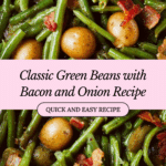 This Old Fashioned Green Beans with Bacon and Onion recipe brings a comforting, home-cooked flavor reminiscent of grandma’s kitchen. Tender green beans and new potatoes are simmered with savory bacon and onions for a hearty side dish everyone will love.