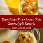 This refreshing Olive Garden Green Apple Sangria combines the crisp sweetness of green apples, juicy strawberries, and citrusy oranges with chilled Moscato wine and pineapple juice. Enhanced by a homemade green apple puree and a splash of Pucker Sour Apple Liqueur, this sangria is perfect for summer gatherings or casual get-togethers, offering a vibrant and fruity twist on a classic beverage.