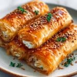 Oven Fried Feta Rolls with Chili Honey combine crispy phyllo pastry with a creamy, savory feta and ricotta cheese filling, finished with a sweet and spicy chili-infused honey drizzle. Perfect as an elegant appetizer or snack, these rolls offer a delightful contrast of textures and bold flavors that are easy to prepare and sure to impress at any gathering.