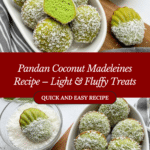 Delight in these fragrant Pandan Coconut Madeleines, a perfect blend of buttery soft French cakes infused with aromatic pandan and topped with a sweet coconut glaze. These bite-sized treats are perfect for afternoon tea or dessert, combining the tropical flavors of pandan and desiccated coconut with the classic buttery sweetness of madeleines.