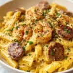 This Delicious Pappadeaux Mardi Gras Pasta is a flavorful Cajun-inspired dish combining penne pasta with tender chicken, succulent shrimp, spicy andouille sausage, and a creamy Parmesan sauce. Enhanced with bell peppers, red onions, garlic, and Cajun seasoning, this dish brings the vibrant spirit of Mardi Gras to your table in just 30 minutes.