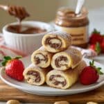 Delicious and easy-to-make French Toast Roll-Ups filled with creamy peanut chocolate spread, rolled in cinnamon sugar for a sweet and satisfying breakfast or snack.