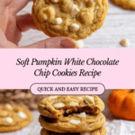 Keywords: pumpkin cookies, white chocolate chip cookies, fall desserts, autumn baking, soft cookies, pumpkin puree cookies
