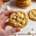 • To make these cookies dairy-free, substitute butter with a plant-based alternative and check that white chocolate chips are dairy-free.
