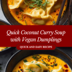 This Quick Coconut Curry Soup with Dumplings is a comforting, creamy, and flavorful plant-based soup featuring tender dumplings, a rich coconut curry broth, and a medley of vegetables. Ready in under 45 minutes, it’s perfect for busy weeknights and can be customized for spice preferences. The soup is vegan-friendly, uses frozen dumplings for convenience, and offers a restaurant-quality taste right at home.