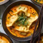 Store the soup in an airtight container in the refrigerator for up to 4 days. Dumplings may soak up broth and soften over time; to prevent this, store dumplings separately and add them when reheating. For freezing, keep only the soup base without dumplings for up to 3 months. Thaw overnight in the fridge, then cook fresh dumplings in the soup when reheating. Reheat gently over medium-low heat, adding a splash of broth or coconut milk if needed to thin the soup.