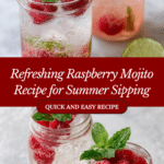 This Raspberry Mojito recipe offers a refreshing summer cocktail with a delightful twist of fresh raspberries. Featuring a homemade raspberry syrup combined with classic mojito elements like mint, lime, and white rum, this drink is lightly sweetened and perfectly balanced to provide a vibrant, fruity, and aromatic beverage ideal for warm-weather indulgence.