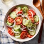 This refreshing cucumber tomato salad combines crisp cucumbers, juicy tomatoes, and sharp onion slices tossed in a sweet and tangy vinaigrette. It’s an easy, flavorful side dish perfect for warm days, potlucks, or any meal that needs a light, fresh touch.