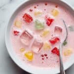 Hwachae is a refreshing Korean fruit punch that’s perfect for warm days or as a light dessert. Combining a variety of fresh fruits with fizzy soda and sweet strawberry milk creates a delightful, colorful treat that’s both hydrating and flavorful.