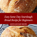 This Same Day Sourdough Bread recipe delivers a rustic, crusty loaf with a tender crumb using a simple mix of flour, water, starter, and salt. Through a process of mixing, stretch and folds, bulk fermentation, shaping, and baking in a preheated Dutch oven, you can enjoy freshly baked sourdough bread in just over 8 hours. The method ensures a deep flavor and beautiful crust with minimal hands-on time.