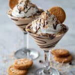 - Strain and garnish: Strain the cocktail into the prepared chilled martini glasses. Top with whipped cream and sprinkle toasted coconut on top if desired. Garnish each glass with a whole Samoa cookie on the rim for a delicious finishing touch.