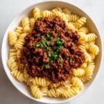 Keywords: beefaroni, ground beef pasta, quick pasta dinner, meat and macaroni, tomato sauce pasta, savory beef pasta