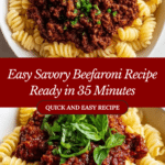 Savory Beefaroni Delight is a hearty and flavorful pasta dish combining perfectly cooked elbow macaroni with browned lean ground beef simmered in a rich tomato sauce enhanced with garlic and Italian seasonings. Ready in just 35 minutes, it makes for a satisfying and comforting meal perfect for family dinners.