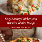 This savory Chicken and Biscuit Cobbler is a warm, hearty dish perfect for comforting family dinners. Combining tender rotisserie chicken, mixed vegetables, and a fluffy cheddar biscuit topping, it’s a crowd-pleaser that’s easy to prepare and full of flavor.