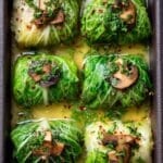 Delight in these savory mushroom cabbage rolls, a comforting and easy-to-make vegetarian dish packed with tender mushrooms, aromatics, and rice wrapped in blanched cabbage leaves and baked in a rich tomato sauce. Perfect for a wholesome family meal or special occasion.