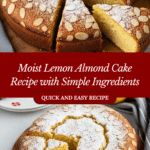 This Simple Almond Cake is a delightful, moist, and naturally gluten-free dessert made with almond flour and fresh lemon zest. Lightly sweetened and topped with sliced almonds, it’s perfect for an elegant tea time treat or a light dessert. The cake is airy due to whipped egg whites folded gently into the batter, resulting in a tender texture with a subtle nutty flavor.