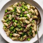 This simple and inviting white bean and pea salad is a refreshing, healthy option that’s perfect for a quick lunch or a light side dish. Ready in just 10 minutes, it combines creamy beans, sweet peas, and a zesty lemon dressing for a burst of fresh flavors.