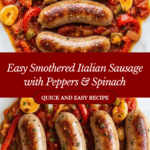 Smothered Italian Sausage is a hearty, flavorful dish perfect for a quick weeknight dinner. Tender sausage links are cooked with vibrant peppers, onions, and greens in a rich tomato sauce. This comforting meal brings classic Italian flavors straight to your table.